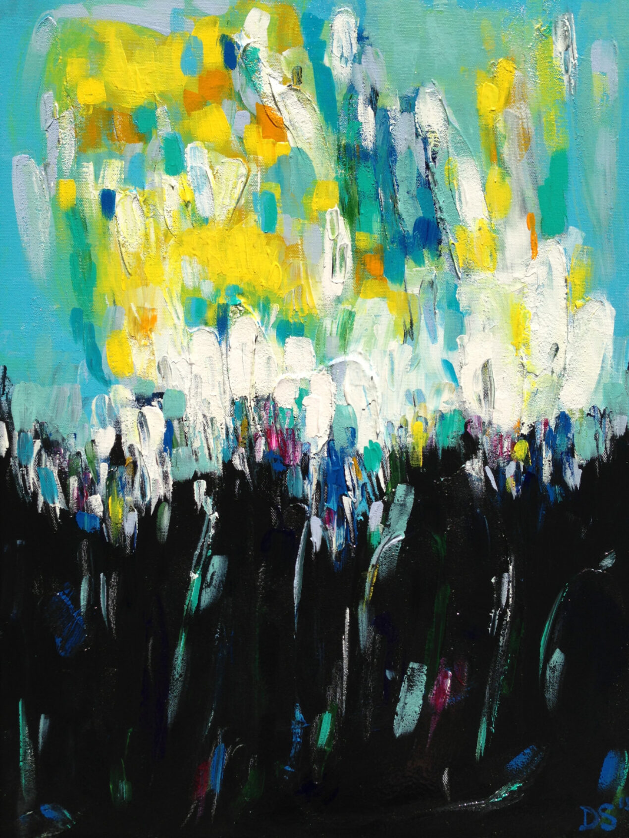 Acrylic on canvas: an original abstract work featuring various techniques and colors that express emotion.
