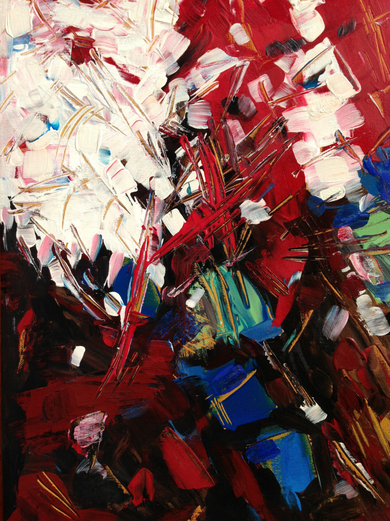 Acrylic on canvas: an original abstract work featuring various techniques and colors that express emotion.