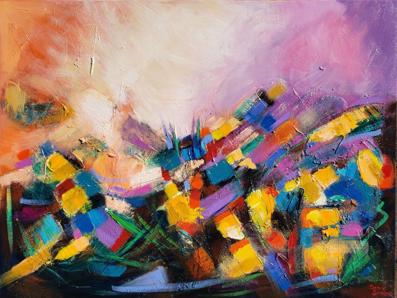 Acrylic on canvas: an original abstract work featuring various techniques and colors that express emotion.
