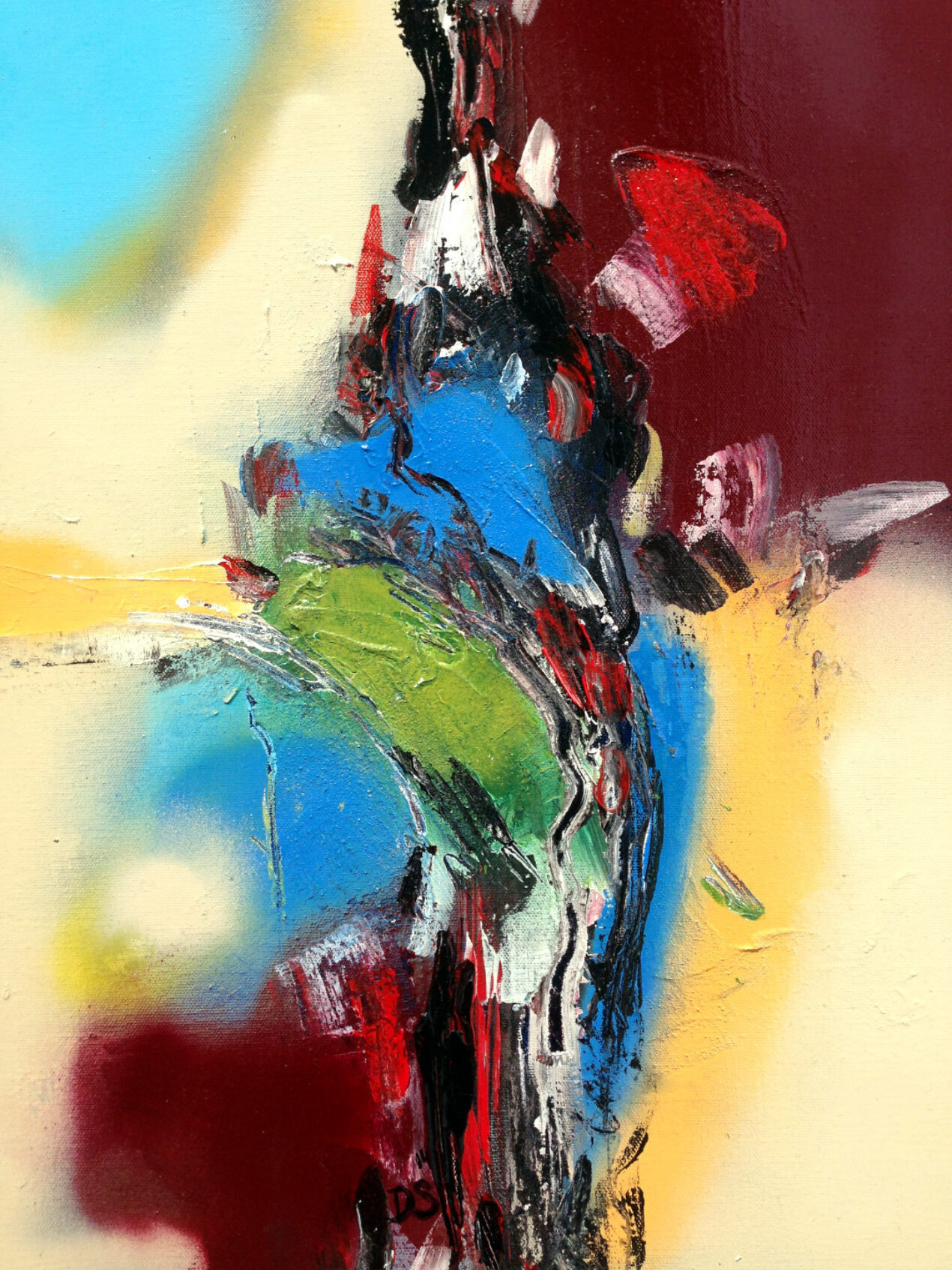 Acrylic on canvas: an original abstract work featuring various techniques and colors that express emotion.