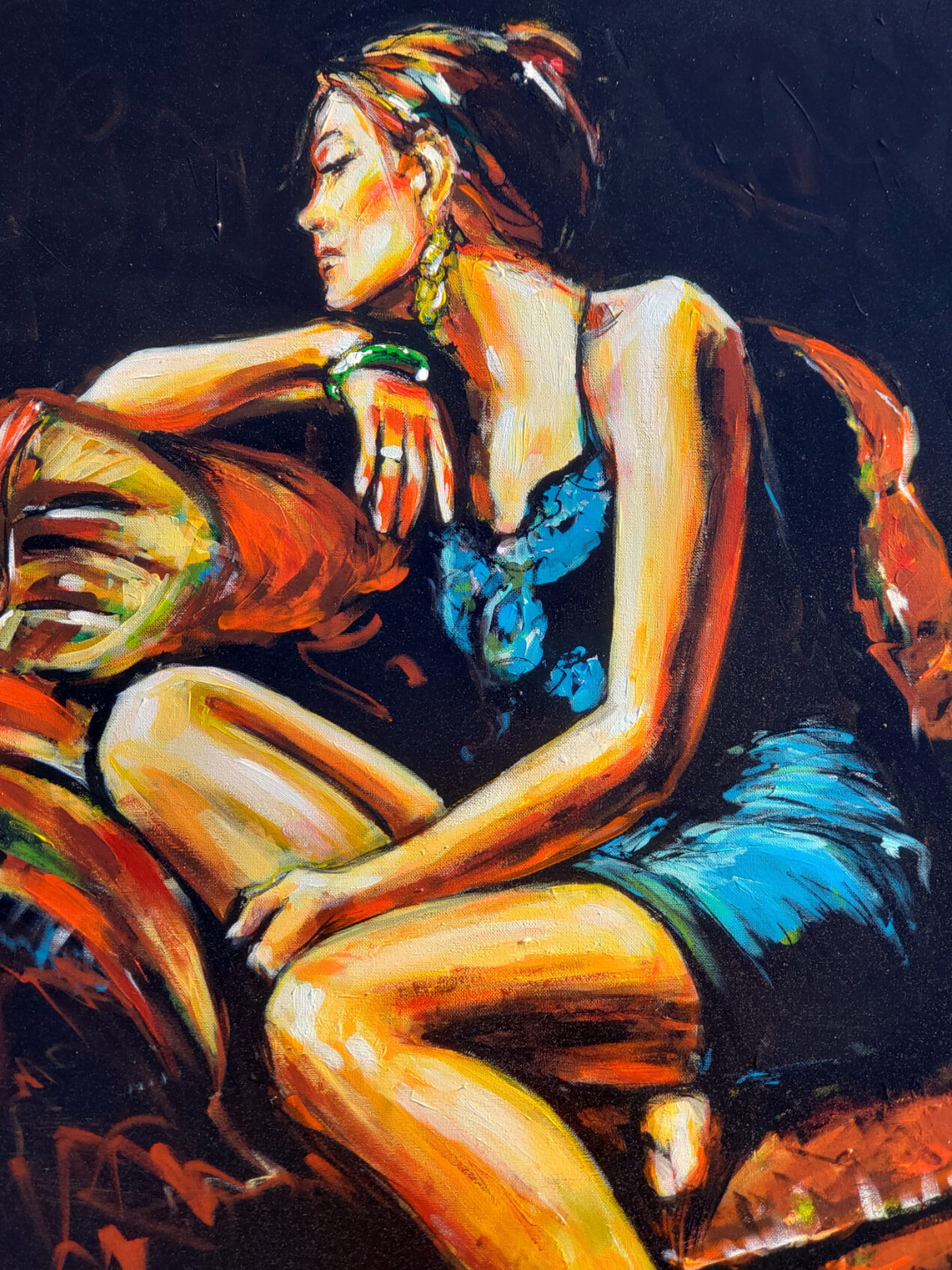 Acrylic on canvas: an original abstract work featuring various techniques and colors that express emotion.