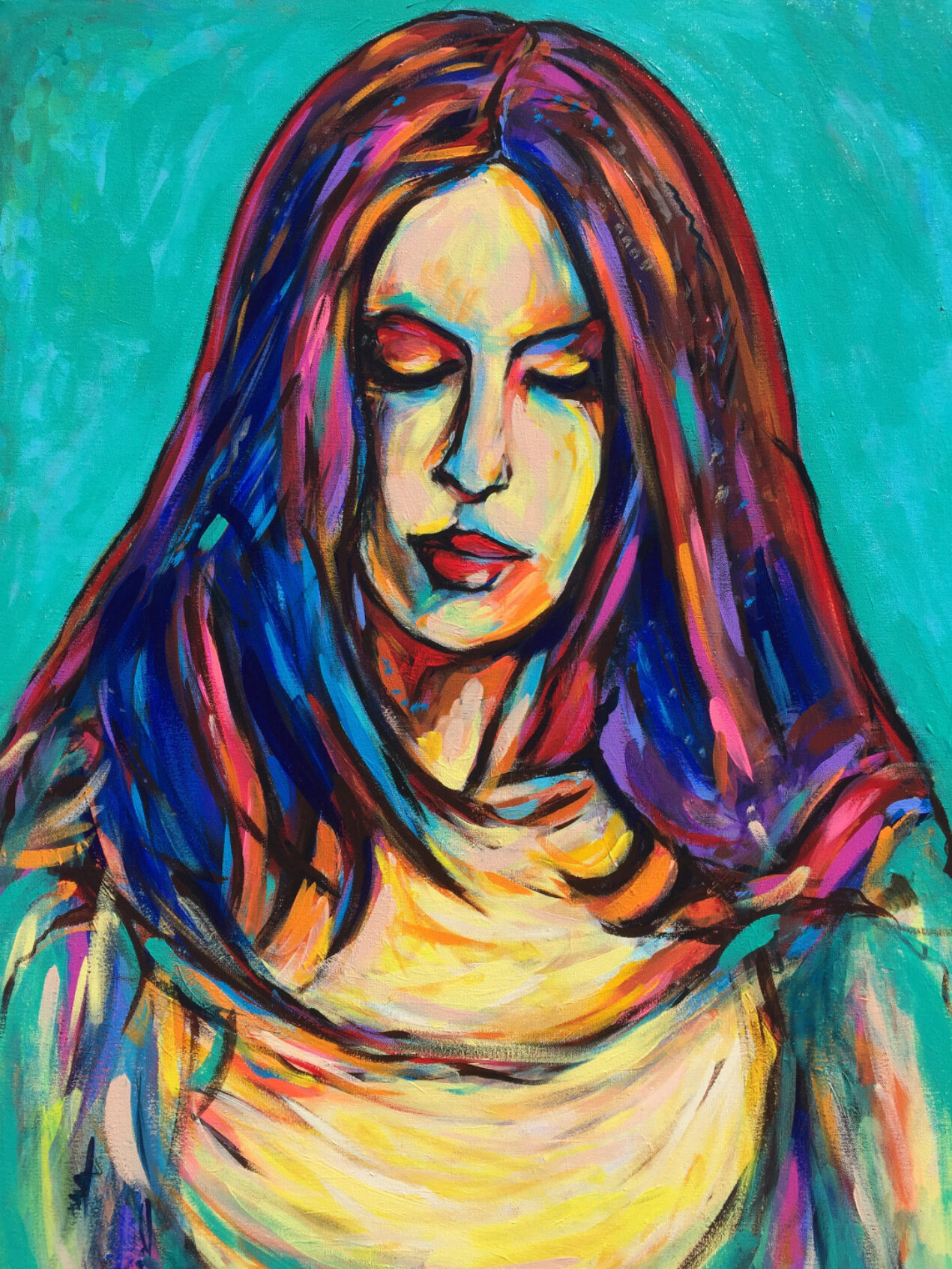 Acrylic on canvas: an original abstract work featuring various techniques and colors that express emotion.