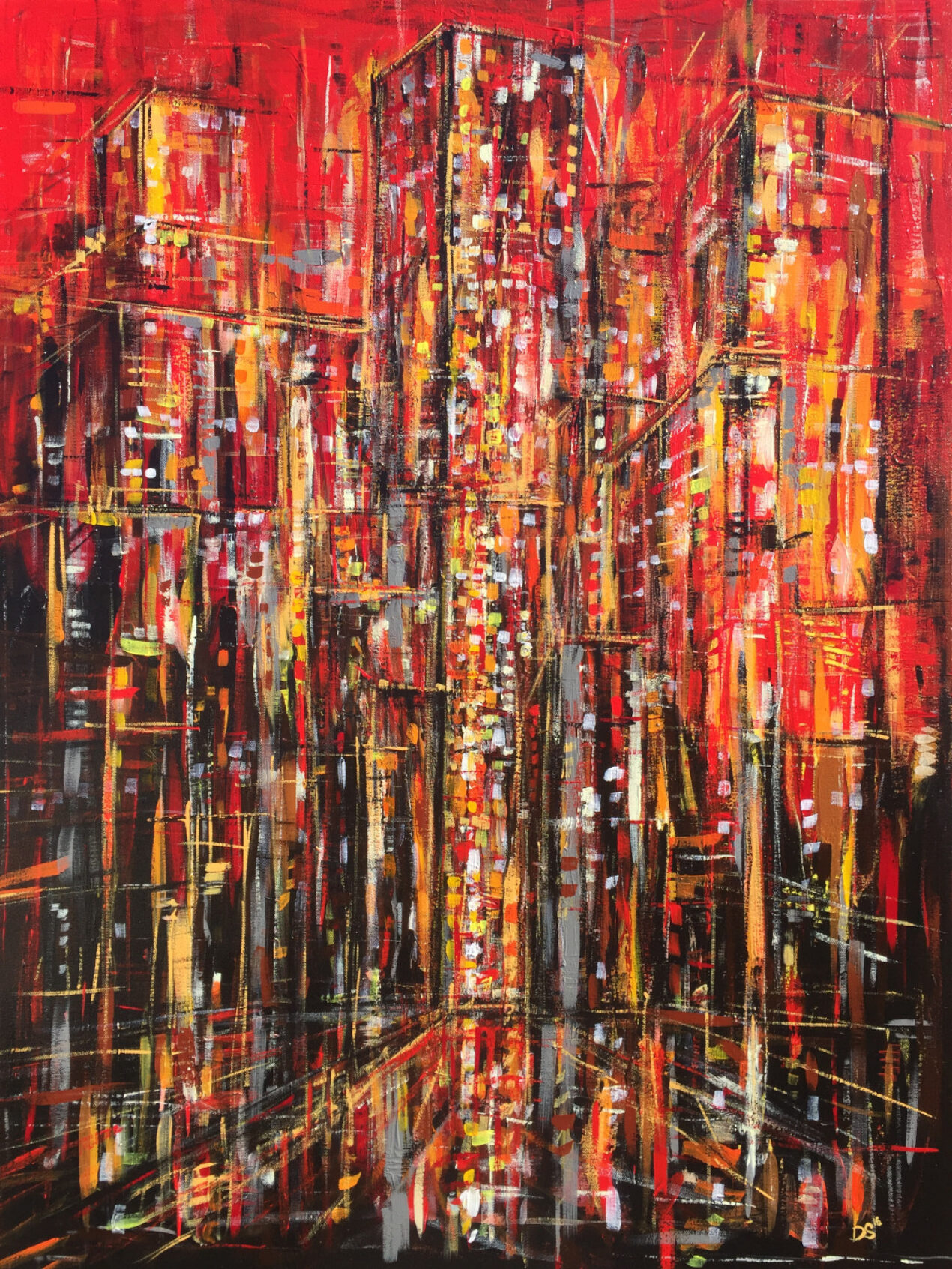 Acrylic on canvas: an original abstract work featuring various techniques and colors that express emotion.