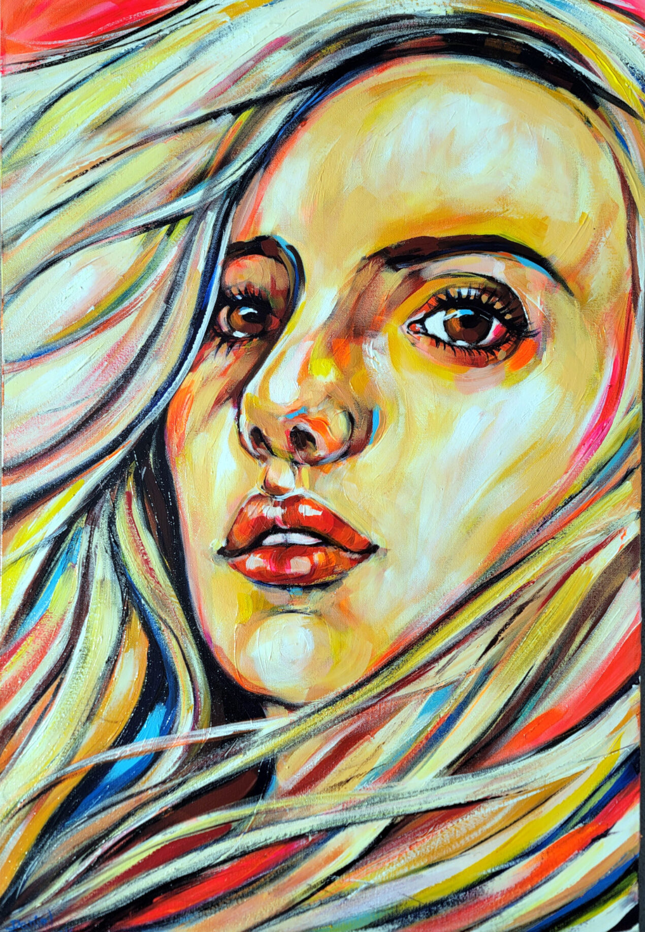 Acrylic on canvas: an original abstract work featuring various techniques and colors that express emotion.