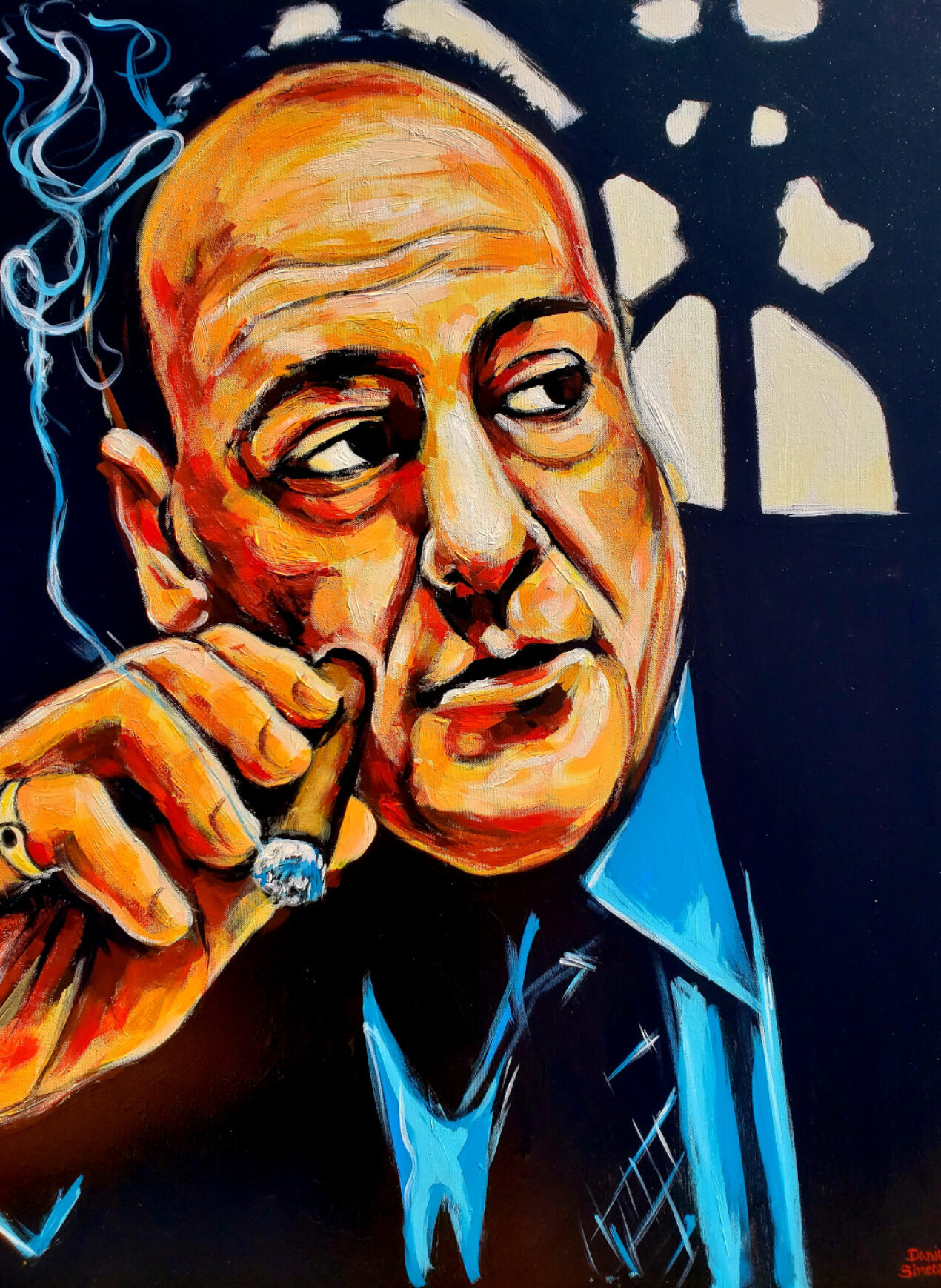 Unique portrait with specific colors and strokes. Acrylic on canvas
