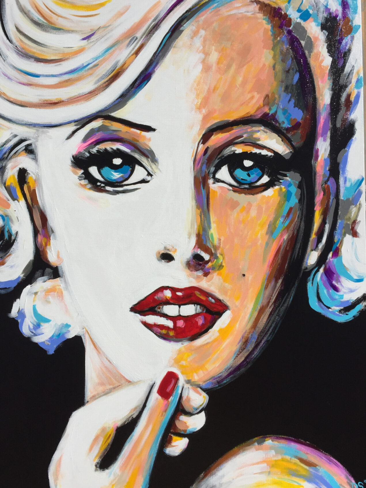 Unique portrait with specific colors and strokes. Acrylic on canvas
