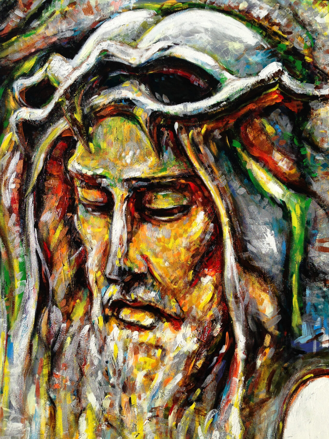 Spiritual images of Jesus with specific colors and shades. Acrylic on canvas.